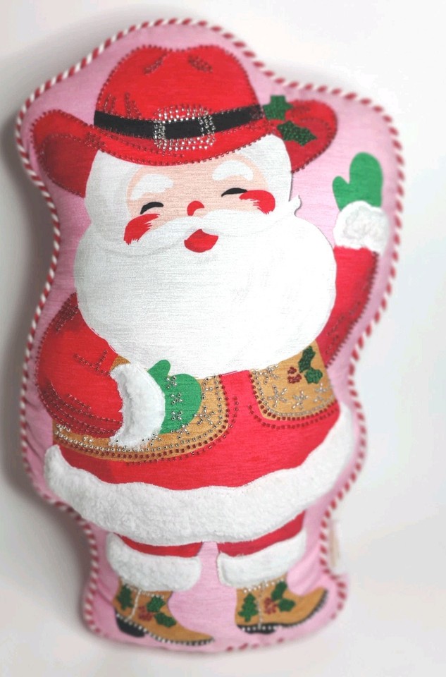 ISAAC MIZRAHI Vintage Style Cowboy Santa Pink Christmas Decorative Pillow 19”