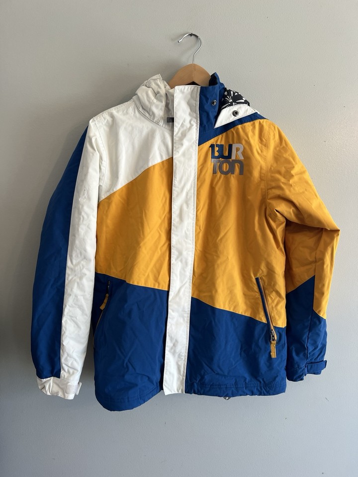 BURTON Boys Symbol 2L Hooded Jacket Coat Snow Ski Snowboard White yellow blue L