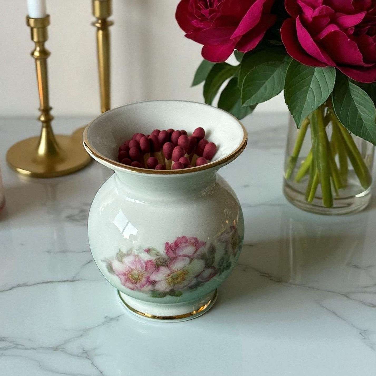 Antique Ceramic Matchstick Holder Strike Pad 28 Safety Matches
