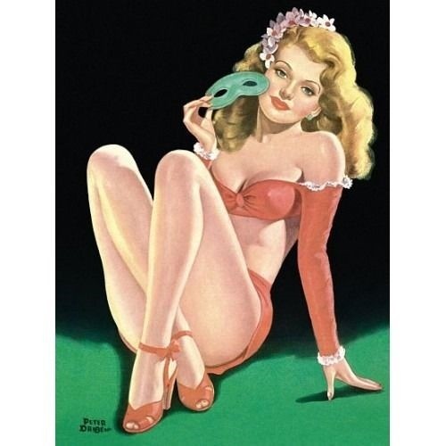 RETRO PIN UP GIRL ART / POSTER " UNMASKED " GIRL IN RED #209 18X24"