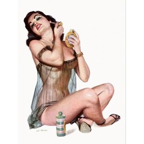 RETRO PIN UP GIRL ART / POSTER "GETTING READY" BRUNETTE IN NIGHTIE #028 18X24"