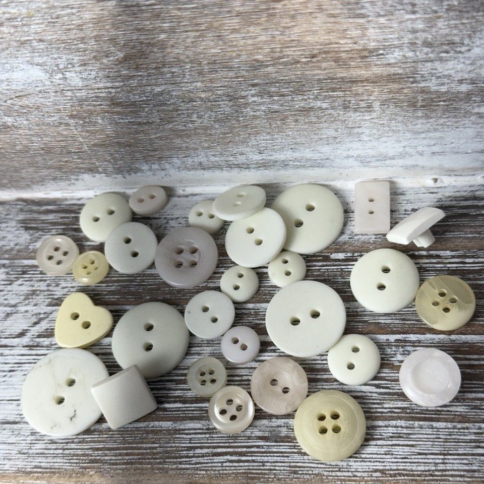 Vintage Unbranded Buttons 29 Counts Mixed Lot, Sizes For Crafting & Sewing CREAM