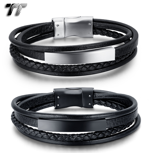 TT Genuine Leather 316L S.Steel ID Magnet Buckle Bracelet 21-22cm (BR238) NEW
