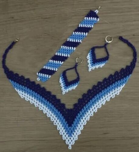 - n***l (238)- Feedback left by buyer.Past monthVerified purchaseBeautiful beadwork on this necklace and earrings. Packaged well and shipped quickly. Will shop with this seller again.