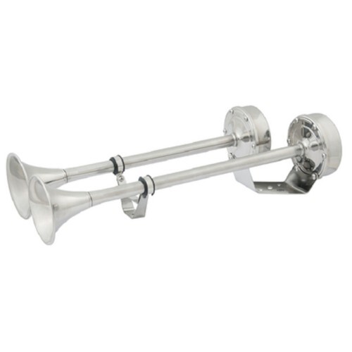 24 Volt 18-1/2 Inch Stainless Steel Dual Trumpet Electric Boat Horn - 123 db
