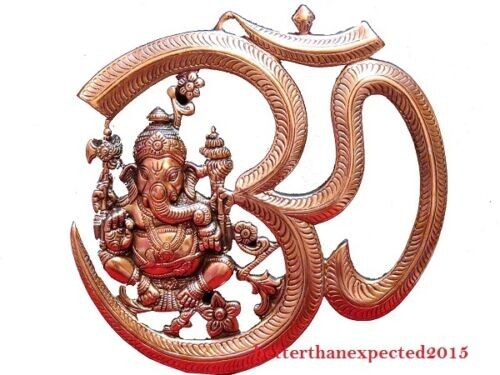 10 " Métal Cuivre Plaqué Ganesha Aum Fait à la Main Statue Mural Décor Maison