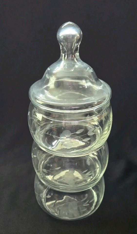 PRINCESS HOUSE HERITAGE 3 TIER STACKING CANDY DISH JAR W/ LID 9" ETCHED FLORAL
