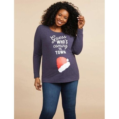 Motherhood Maternity Christmas Sweatshirt Guess Who's Coming Town L