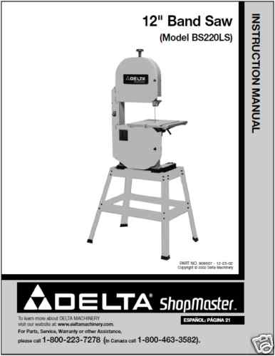 Delta 12" ShopMaster Band Saw Instruction Manual Model BS220L
