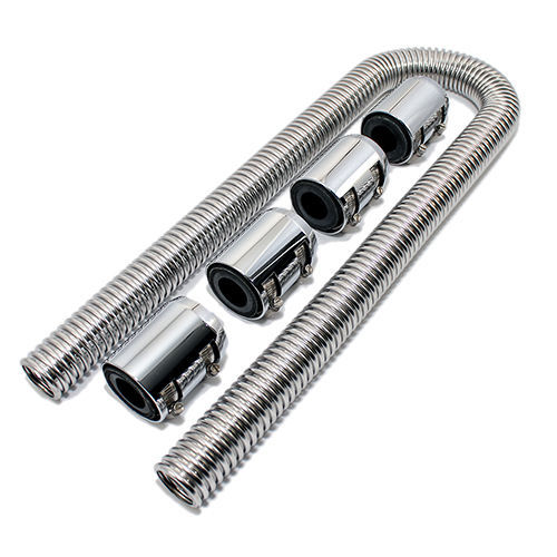 48" CHROME STAINLESS STEEL RADIATOR HOSE KIT CHEVROLET LS MOTORS GM CHEVY FORD