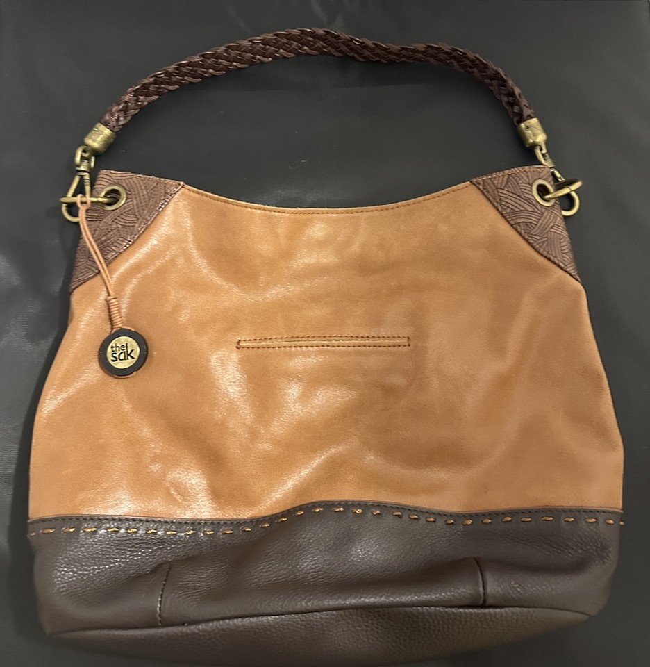 The Sak Leather two tone shoulder bag braid strap Camel Brown Contrast Stitching
