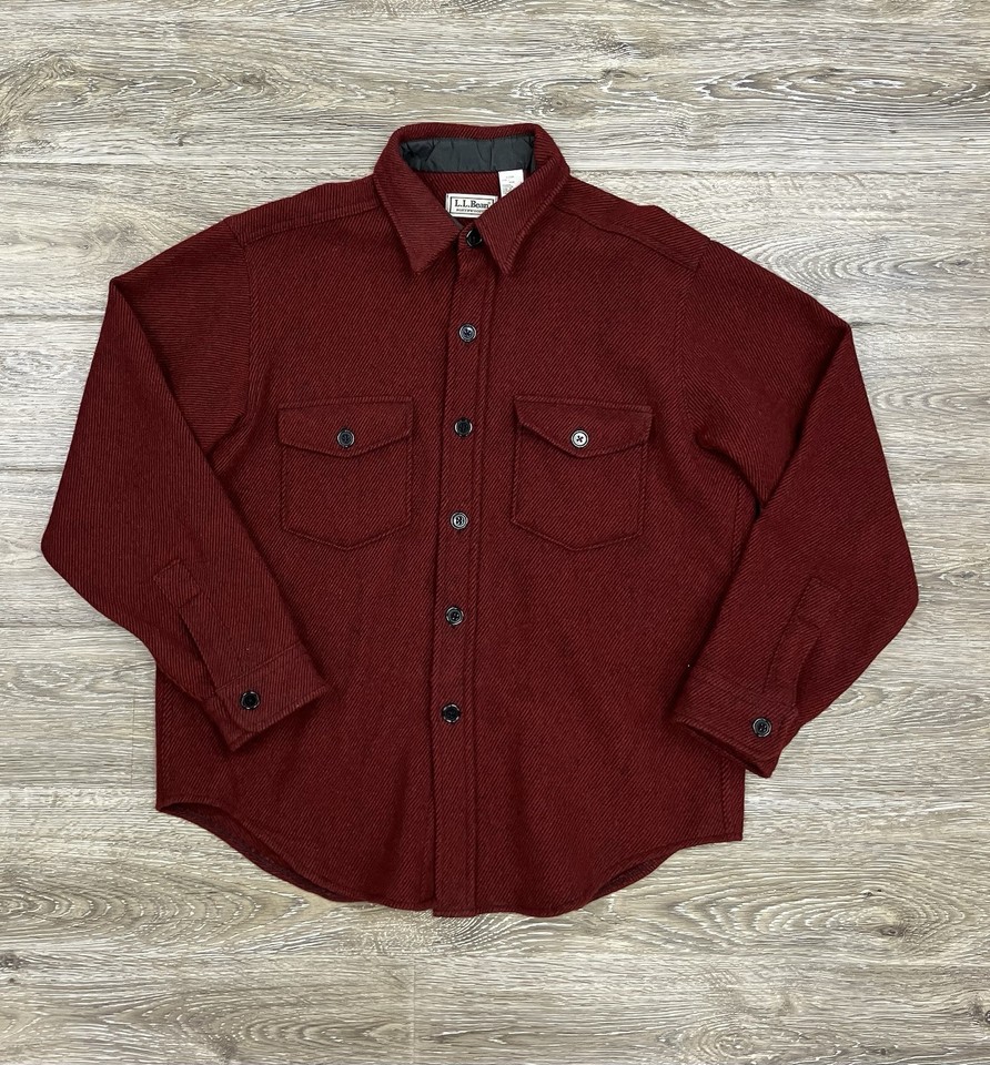 VTG LL Bean Northwoods Wool Shirt Jacket Men L Red Shacket Heavy Lined USA Made