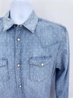 All Saints Men's Medium Denim Shirt Pearl Snap Blue Pocket Long Sleeve