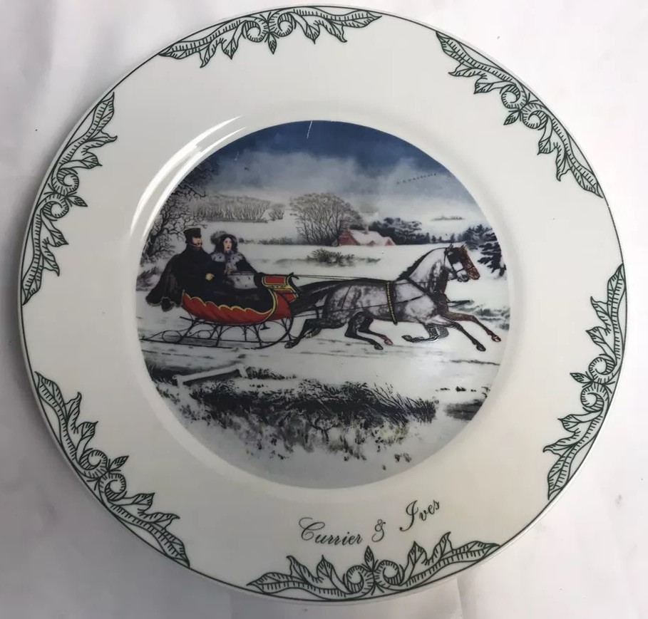 VINTAGE CURRIER AND IVES DINNER PLATE ENGLAND "THE ROAD WINTER"