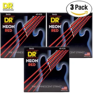 3-PACK DR NRB-45 Neon Red K3 Coated 4-String Electric Bass Strings 45-105