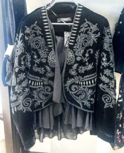 A714 ZARA BLACK VELVET KIMONO EMBROIDERED BEADED JACKET COAT SMALL - S