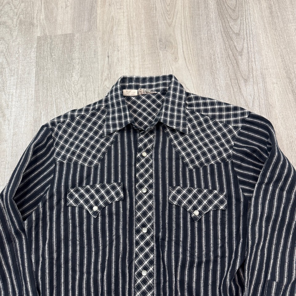 Vintage Western Shirt Men's Large Pearl Snap Button Striped Cowboy Rodeo 90s