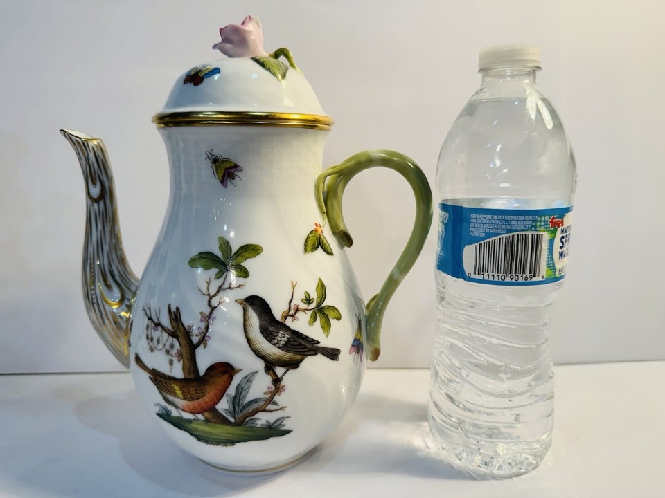 Herend Porcelain Rothschild Bird 8 3/4” Coffee Pot Rose Finial Retail $595 MINT