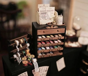 1:6 miniature Wooden Spool Storage Cabinet Removable Drawers Dollhouse Organizer