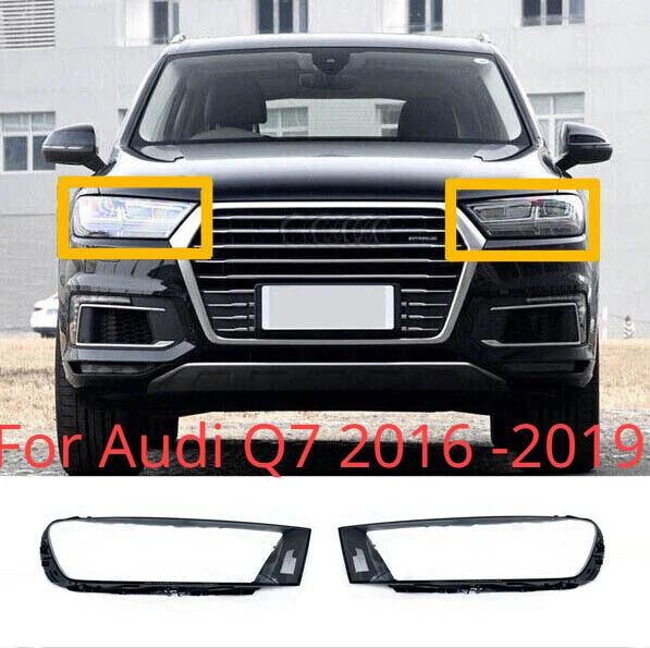 For Audi Q7 2016 -2019 Headlight Headlamp Clear Lens L+ R Cover 2Pcs pair