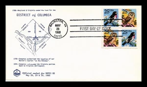 US COVER OWL AND GROSBEAK 25C FIRST DAY ISSUE BLOCK NAPEX DISTRICT OF COLUMBIA