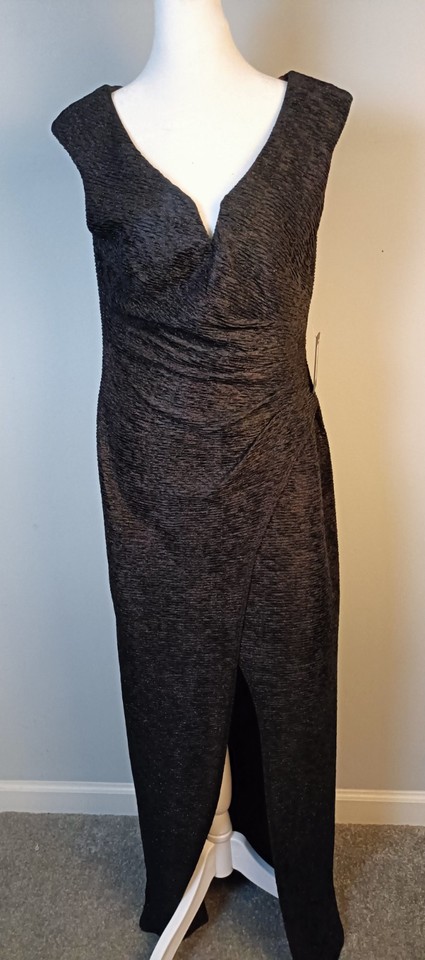 Marina Dresses Sz 6 Black Maxi w/Split Faux Wrap Sparkle Evening Gown Sexy Goth