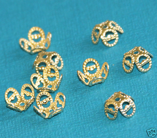 100 pcs of Gold plated Brass filigree bead cap 9mm