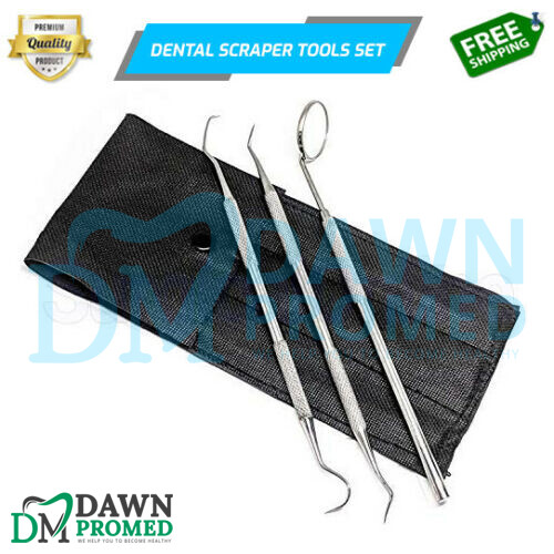3 Pcs Dental Scraper Tools Set With Pouch Dentist Pick Medical Inst German Grade