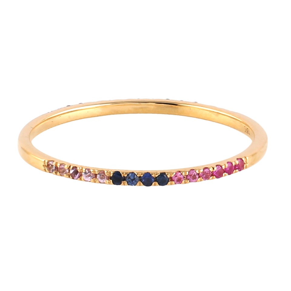 Multicolor Pave Sapphire Band Ring 18k Solid Yellow Gold Fine Handmade Jewelry