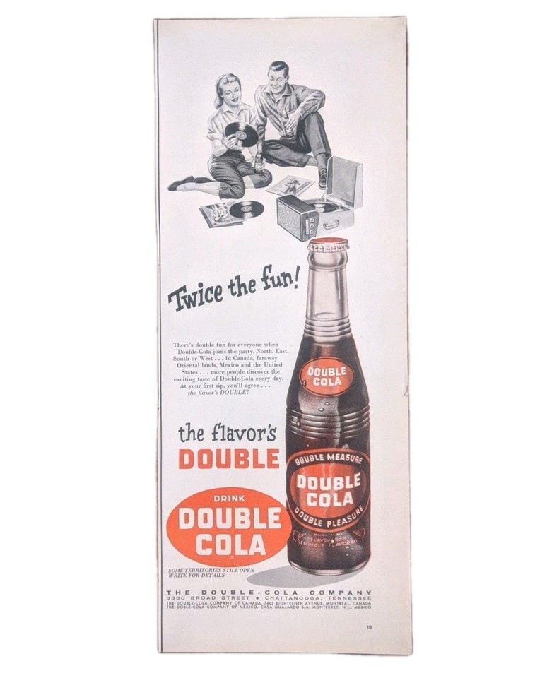 1956 Retro Double Cola Print Ad. Discontinued Soda Drink Double Flavor