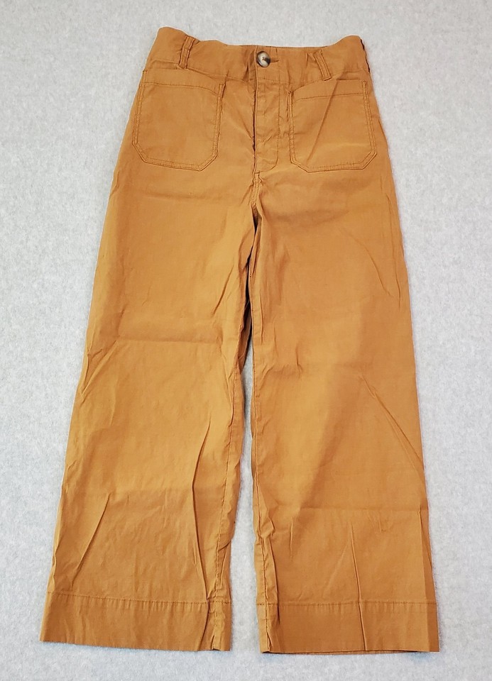 Anthropologie Wide Leg Crop Pants Linen Blend Stretch Size 31 Beige Lightweight