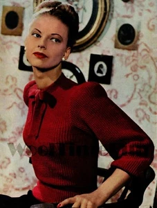 Knitting Pattern Vintage 1940s Lady's Jumper/Sweater . Tie Neck Detail.