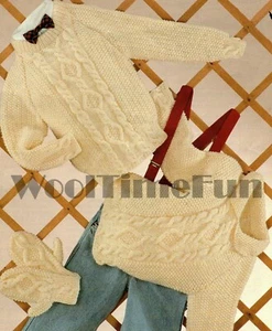 Knitting Pattern Kids/Boys/Girl s Aran/Cable Sweaters & Mittens.