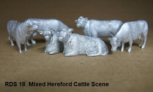 00/4MM 1:76 scale JOHN DAY WHITE METAL RDS 18 HEREFORD CATTLE/COWS "MIXED"