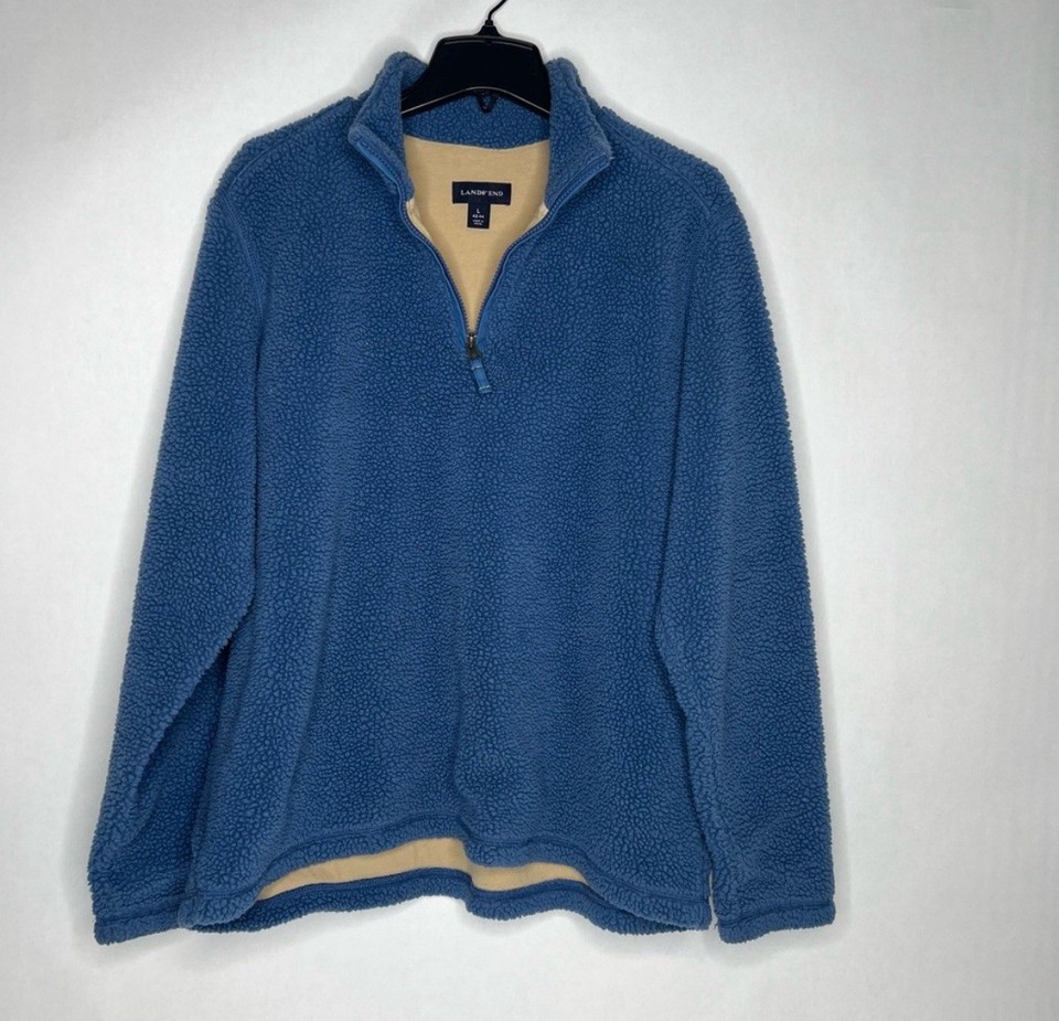 Lands End Men's Sherpa 1/4 Zip Cotton Lined Pullover Jacket Large Fleece Blue