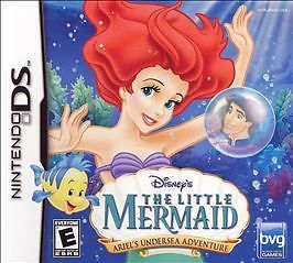Inspired by the original Disney film, Disney's The Little Mermaid: Ariel's Undersea Adventure features clips and characters from the movie, activities that make use of the DS' microphone and stylus, musical mini-games, and treasure hunting. Navigate Ariel through 13 levels of gameplay including musical multiplayer wireless mini-games such as playing along with the Barnacle Band, and uncovering buried treasure by rubbing the stylus over a dirt patch, tapping the stylus against the screen to remove crabs and coral from the artifact, and then blowing into the microphone to get rid of the last layer of dust. During the game Ariel can collect shells and barnacles that teach Flounder tricks to perform for your amusement. With tips and hints from King Triton and Flounder you can tackle missions such as freeing crabs from cages.