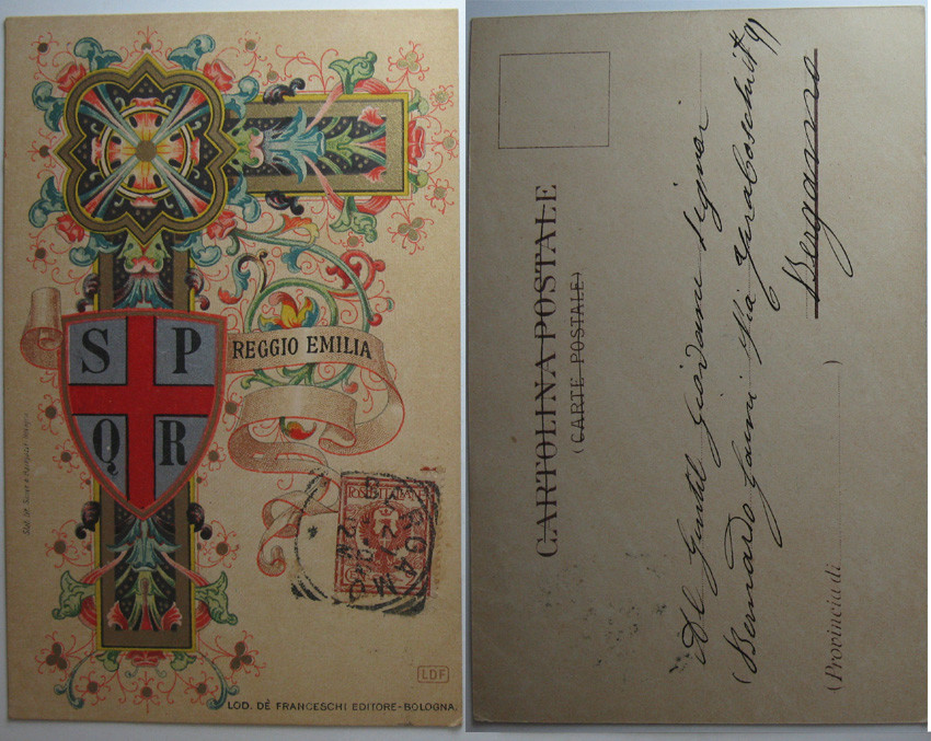 *TRIU* CARTOLINA REGGIO EMILIA - STEMMA DELLA PROVINCIA LIBERTY VIAGGIATA 1902