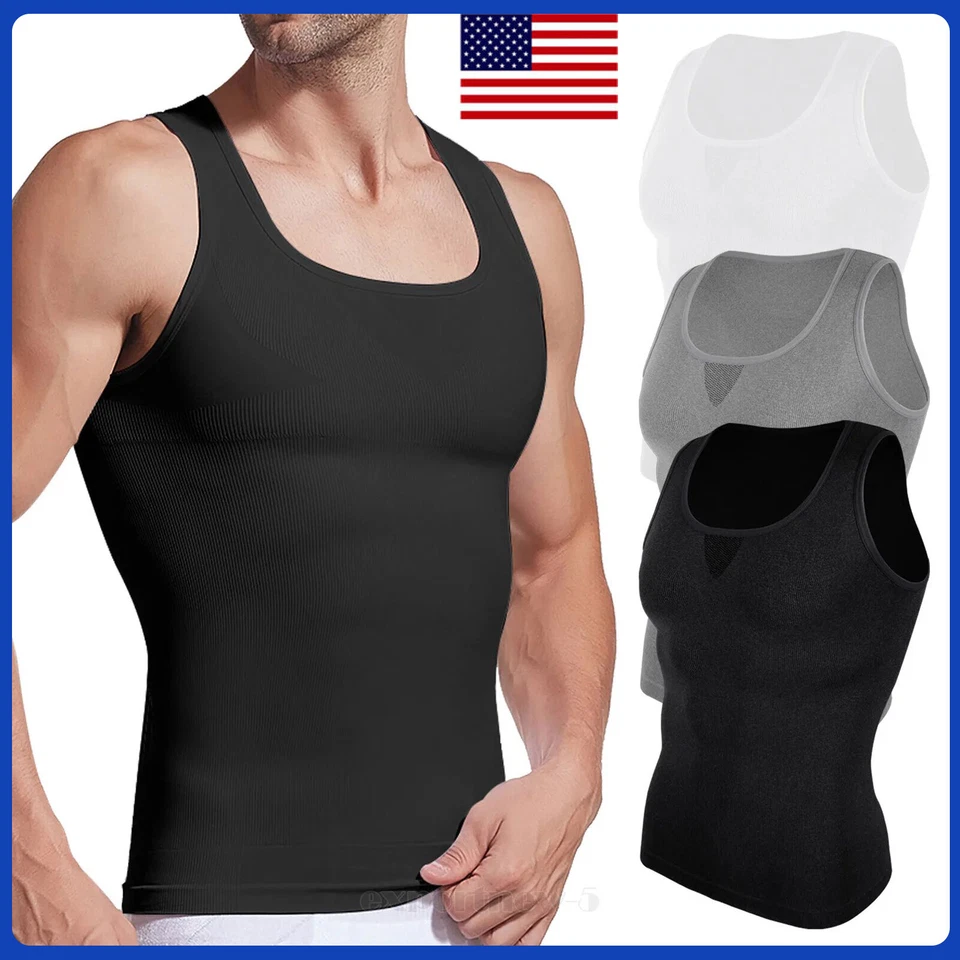 Mens Slimming Body Shaper Vest Abs Abdominal Compression Shirt Workout Tank Tops