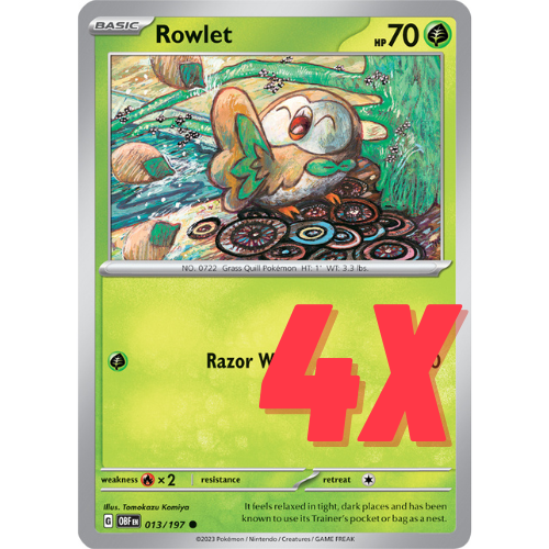 (4) Pokemon TCG Rowlet 013/197 S&V Obsidian Flames Regular Playset 2023 NM