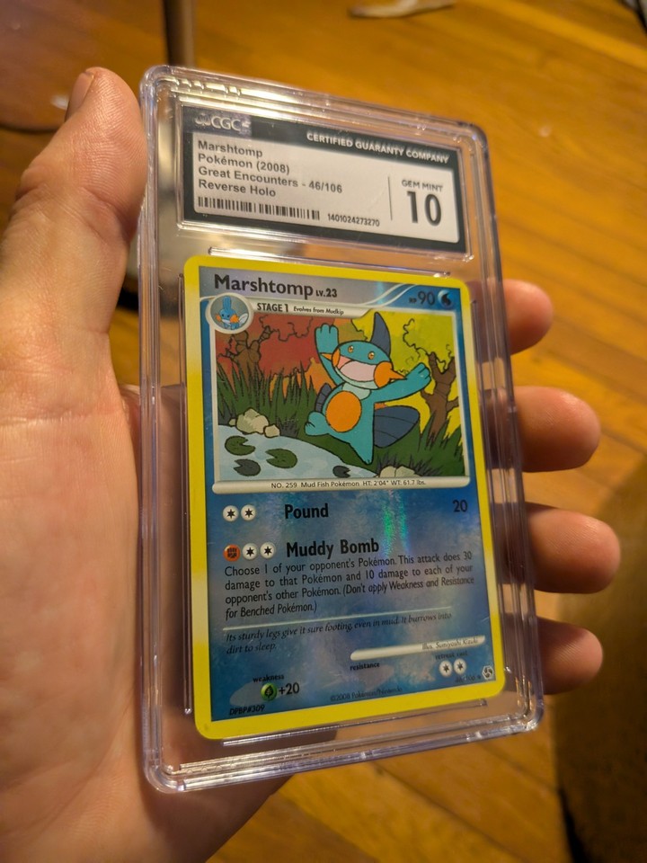 (POP 19) CGC 10 GEM MINT Pokemon Great Encounters Marshtomp LV.23 46/106 Holo