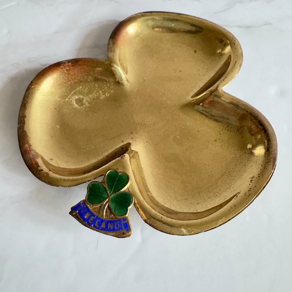 Vintage Ireland Gold Tone Shamrock Souvenir Ashtray Trinket Dish
