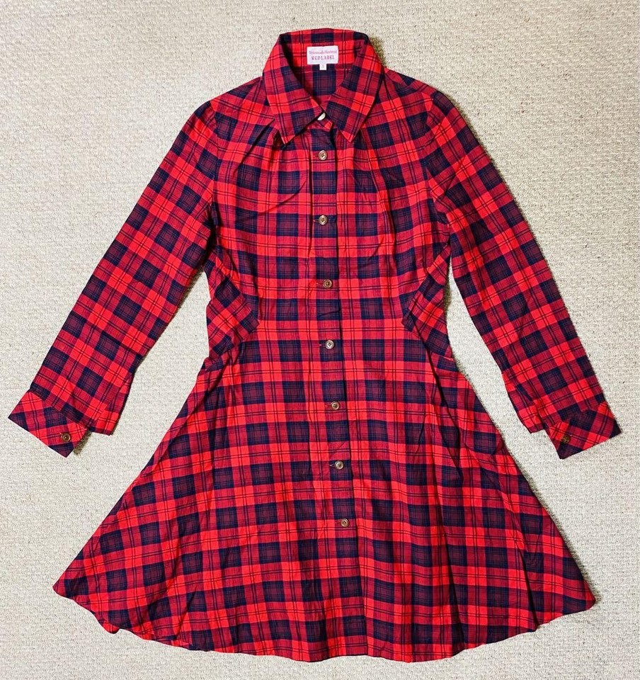 Vivienne Westwood Plaid Shirt Dress Long Sleeve 3 Size Red blue