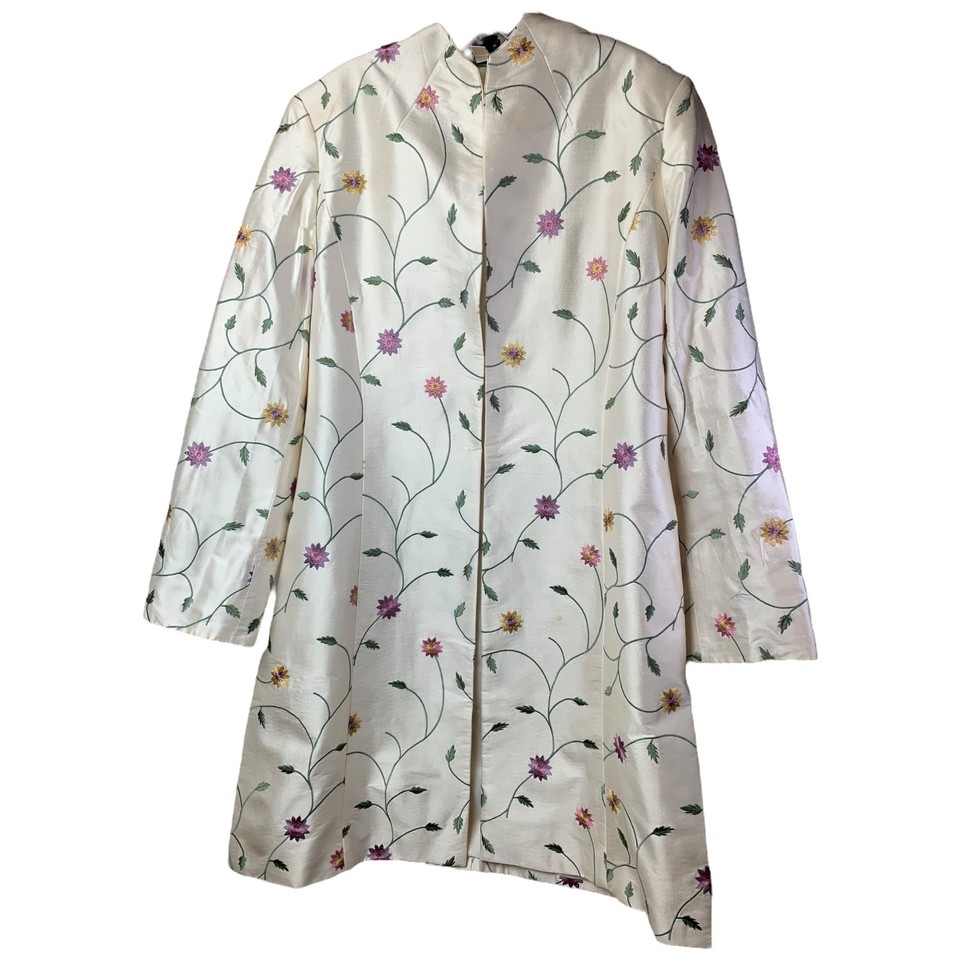 Austin Reed Coat Womens 12 White Embroidered Floral 100% Silk Long Jacket