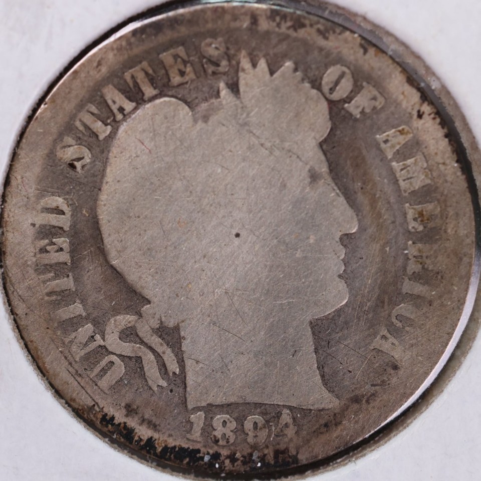 1894 Barber Silver Dime, Fair Circulated Coin, Store #d894.01