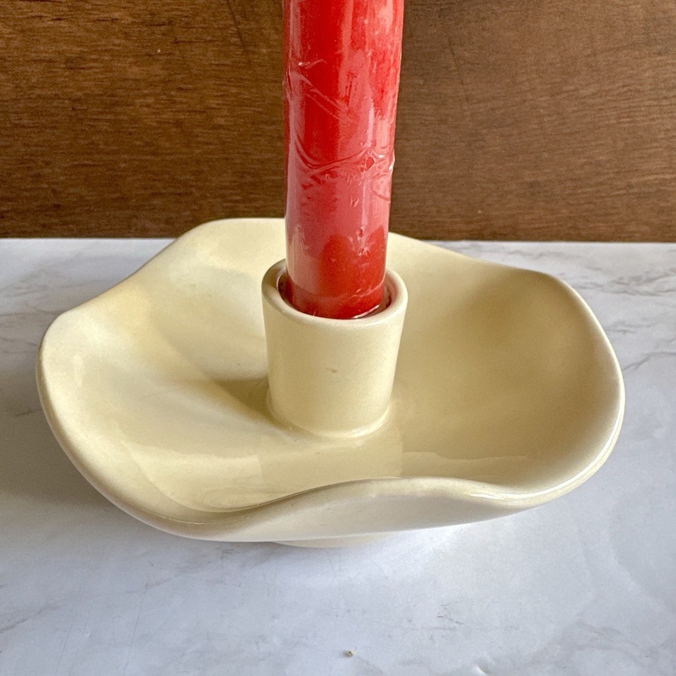 VTG Jem of California Cream White Candlestick Holders Ceramic California Pottery