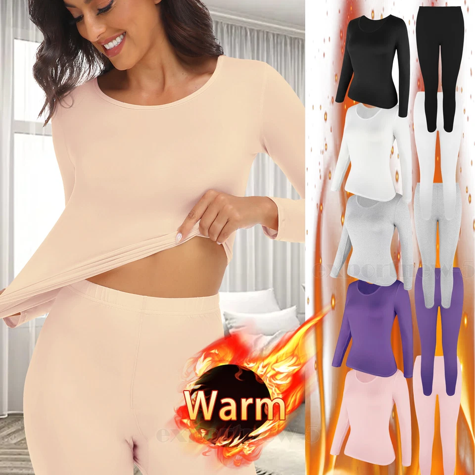 Winter Thermal Underwear Set Women Long Johns Base Layer Top Bottom No fleece