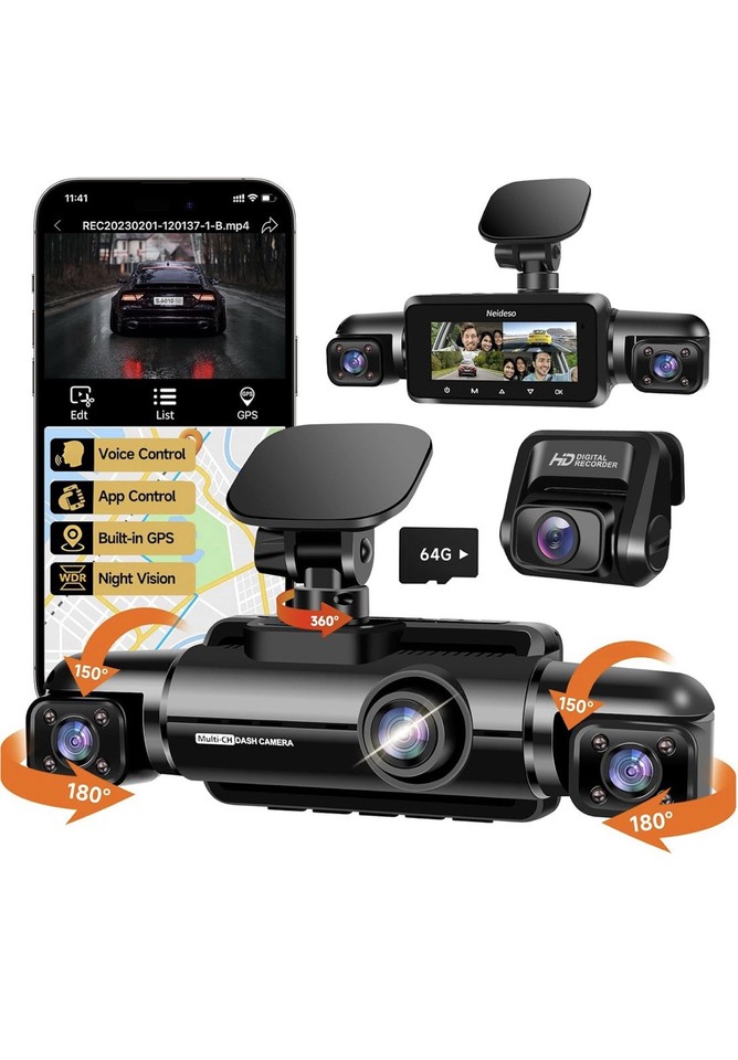 360° Dash Cam Front and Rear Inside, 4 Channel FHD 4 * 1080P, Wi-Fi GPS Voice Co