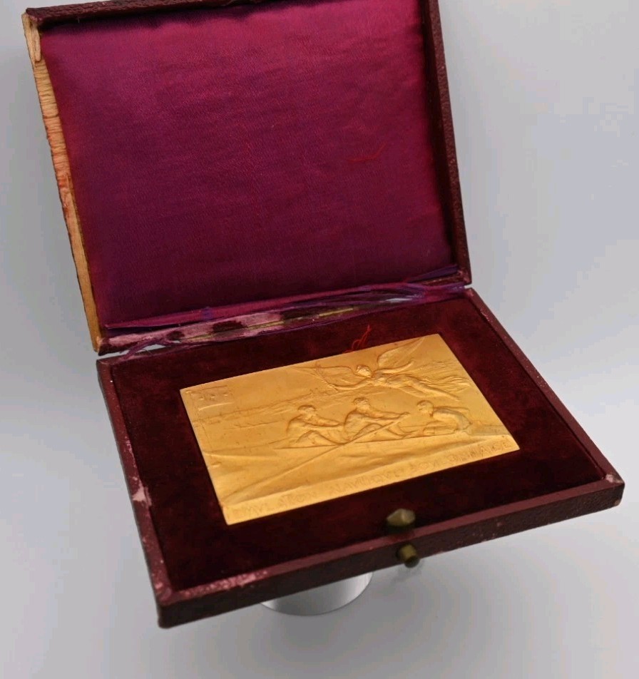 1912 rare Rowing French Medal Plaque Jean-Paul Aubé Bronze Gold Gilt Box