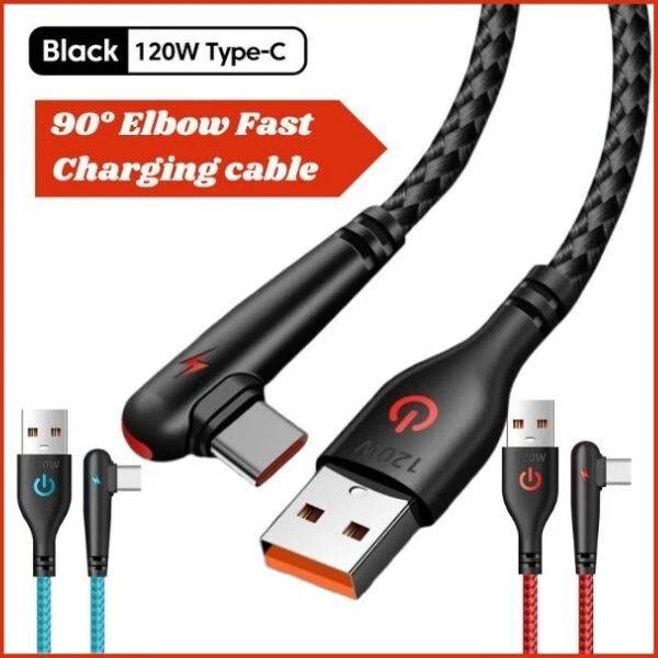 90 Degree USB to Type C USB-C Cable 3A 120W Fast Charge Braided Lead for Samsung