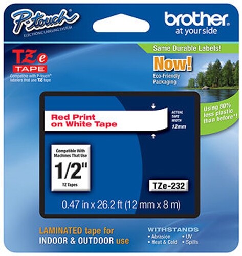 Brother 1/2" (12mm) Red on White P-touch Tape for PT1650, PT-1650 Label Maker